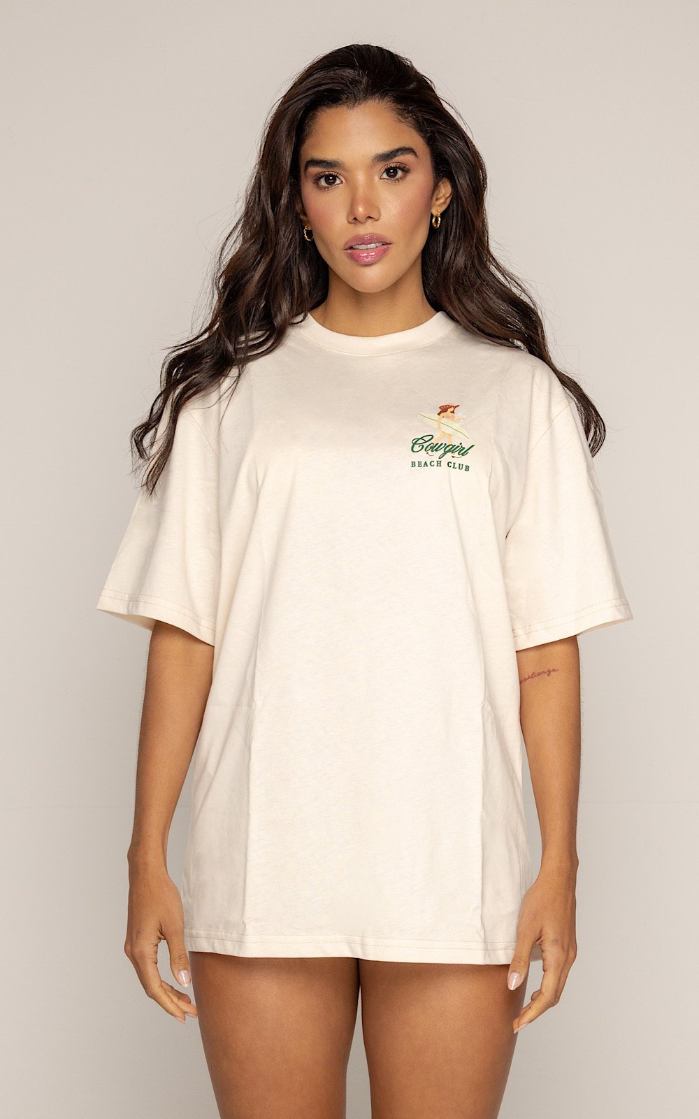 Camisa oversize en 100% algodón, con logo estampado delantero y bordado posterior inspirado en el concepto de la colección.