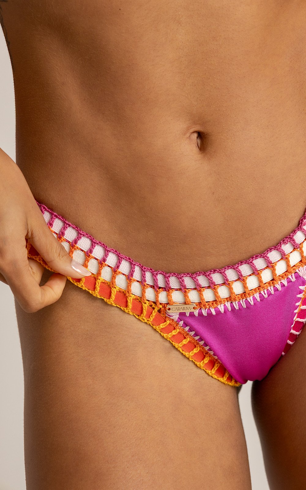 Traje de baño doble faz en licra con destellos color magenta revés naranja, este diseño viene con los bordes tejidos y elásticos dentro del tejido lo que aporta comodidad y permite que este se adhiera a la horma de tu cuerpo, trae un detalle de realce en la cola para una horma perfecta!